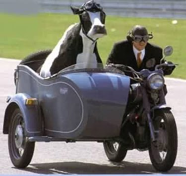 Lots of other animals are known to ride along occasionally. And since it's still world animal day today, go out and take your pet for a ride. Except if it's a fish. Well maybe you can, but only if you don't take it out of its bowl. And don't ride a hardtail chop. Ah hell, you decide what's best for yours. Just make shure it gets a little extra attention today.